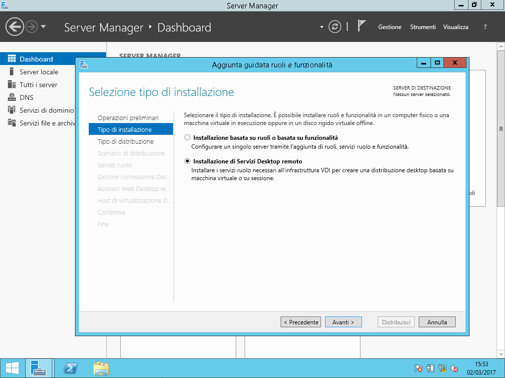 Selezionare “Distribuzione di desktop basati su sessioni”: