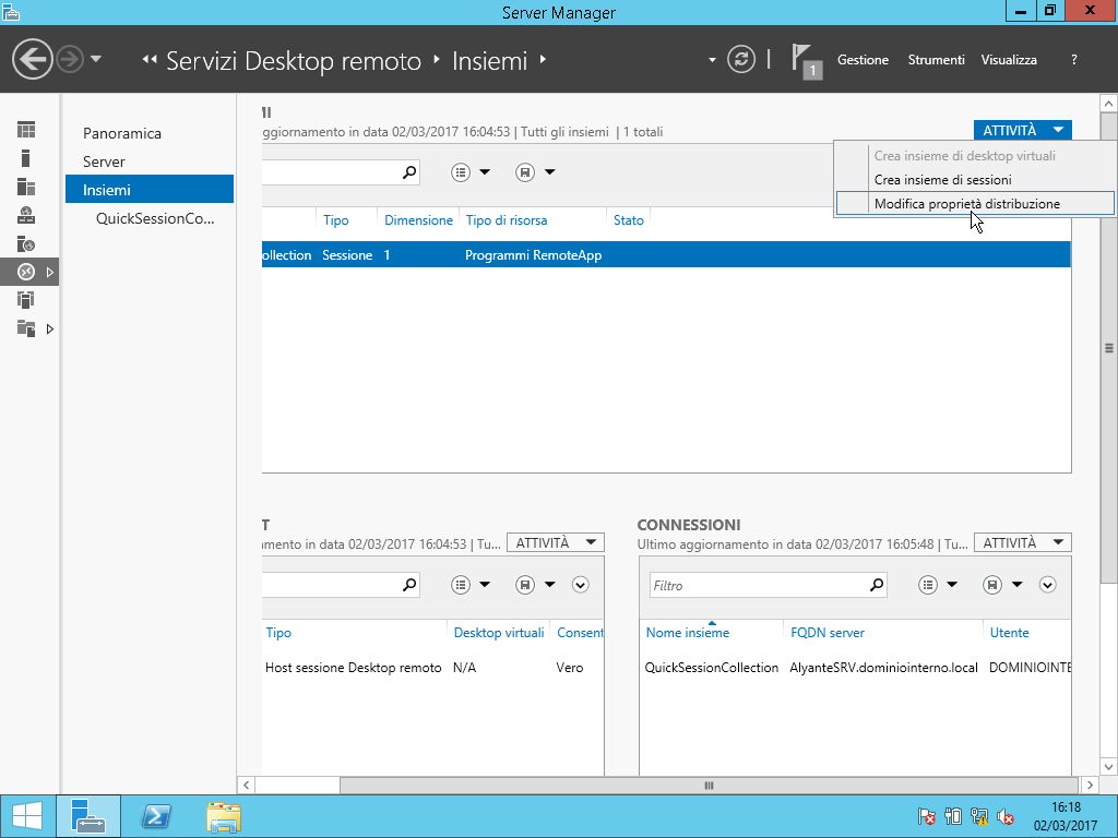 Selezionare il nome di insieme “QuickSessionCollection” e su Attività Modifica proprietà distribuzione: