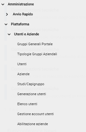 A prescindere dall’azienda o dal gruppo aziendale a cui saranno associati, gli Utenti vanno creati dalla rispettiva voce di menù “Utenti”.