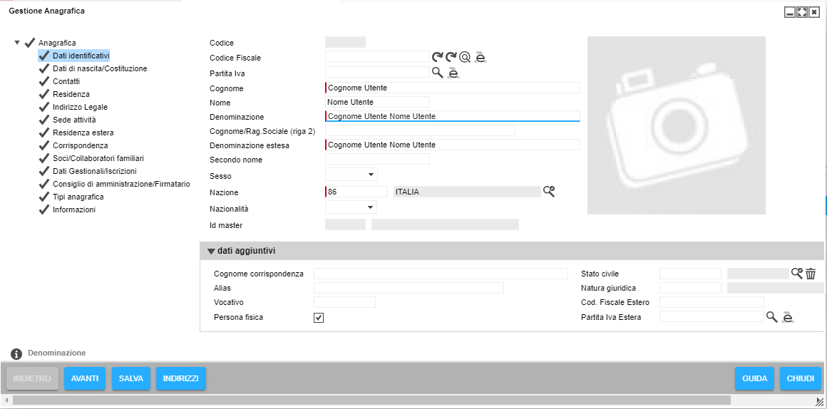 L’utente va quindi associato ad un Codice interno anagrafica se già presente, oppure creandone uno nuovo appositamente: