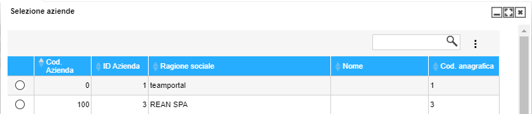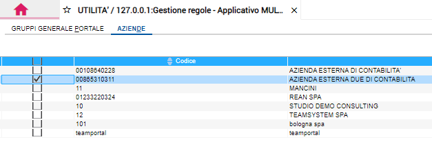 Si accede alla voce “Aziende”, dove oltre al default “teamportal”, si troverà lo Studio (nell’esempio Rean spa)