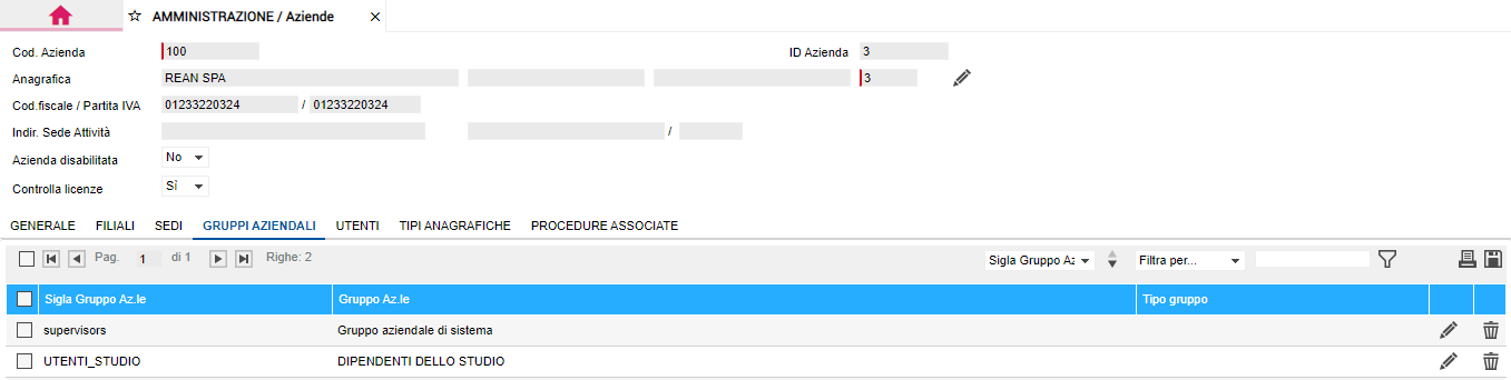 All’azienda normalmente sono associati uno o più gruppi aziendali.