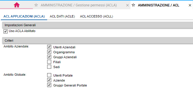 ACLA per Azienda Utenti Gruppi Aziendali Filiali Sedi ACLA globali Utenti Portale Aziende Gruppi Generali Portale