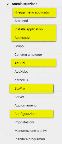 • Procedure Gestionali Amministrazione [Le voci sotto evidenziate in Giallo]