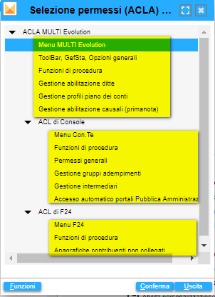 Tramite la voce Gestione si accede alla personalizzazione dei permessi ACLA: