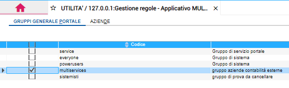 I permessi delle Multiservices, sono invece gestiti in “Ambito Globale”, sfruttando i “Gruppi Portale”.