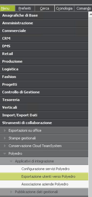 Polyedro Applicativi di integrazione Esportazione utenti verso Polyedro Configurazione Servizi Polyedro