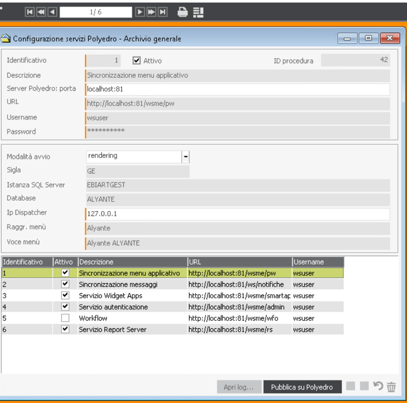 3. aprire nuovamente il menù “Configurazione servizi Polyedro”, riconfigurare i parametri di connessione corretti e ripubblicare il menù.