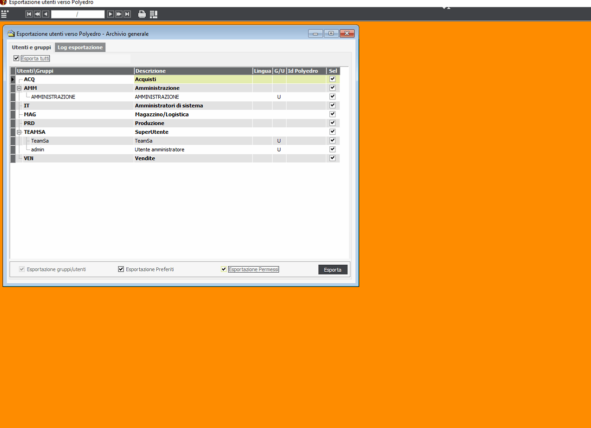 Se tutta l’esportazione di prima è andata correttamente dobbiamo rimuovere l’utente admin associaciato alle aziende