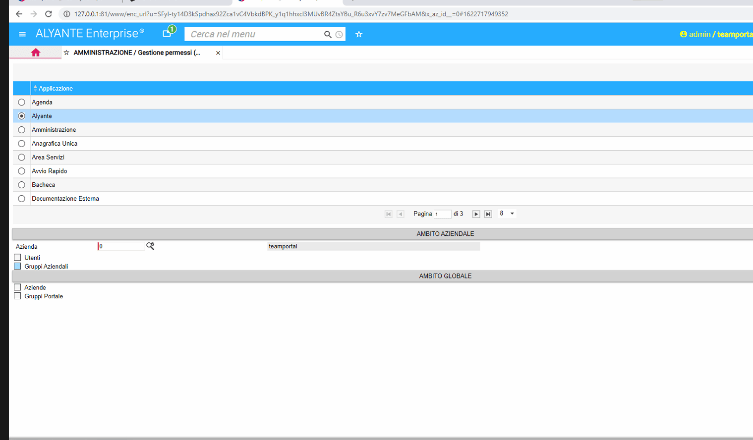 Se tutto gira bisogna dare in ACLA i permessi ALYANTE admin CONSENTI TUTTO