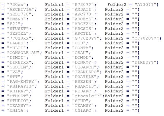 Queste le cartelle delle procedure ( Prima colonna la cartella procedura, seconda la cartella con archivi ).