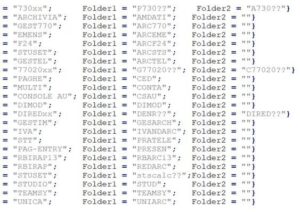 Queste le cartelle delle procedure ( Prima colonna la cartella procedura, seconda la cartella con archivi ).